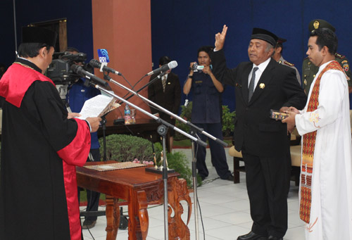 ”Kedudukan yang setara bermakna bahwa antara DPRD dan Pemda memiliki hubungan yang serasi dan tidak saling mendominasi satu sama lain,” tandas Gubernur dalam sambutan pada upacara pengucapan sumpah/janji dan pelantikan Wakil Ketua DPRD NTT, Drs. Kasintus Proklamasi Ebu Tho menggantikan almarhum Drs. Ed Foenay, M.Si di ruang sidang DPRD NTT, Senin (7/11/11).