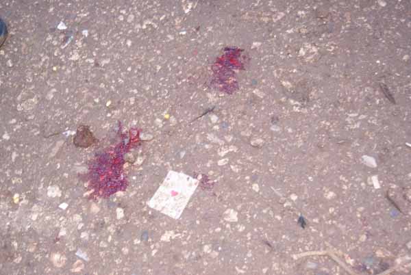 Lubang dan darah bekas tembakan polisi di Pasar Inpres
