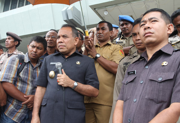 Usai menjelaskan sikap Pemerintah Provinsi NTT terhadap kebijakan nasional yang menempatkan para guru di Provinsi NTT, Gubernur Lebu Raya meninggalkan para demonstran dan kembali ke ruang kerjanya.